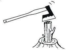 Schlagen Sie auf keinen Fall mit einem Hammer auf den Nacken der Axt. Das Öhr wird verbogen! Benutzen Sie die Axt selbst nicht als Hammer!