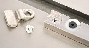 Dieser T-Clip an der Gleitführung ist abschraubbar. Damit passt die Führung auch in 3/4 Zoll Schienen, die unten keine T-Verbreiterung haben.