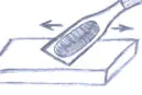 Abweichend davon gilt für schmale Stecheisen, bei denen die Schneide schmaler ist als die Länge der Fase: Halten Sie diese Eisen mit der rechten Hand möglichst weit hinten am Griff und führen Sie sie beim Schärfen mit der Schneide vorwärts und rückwärts. Es ist vollkommen legitim, eine Schleifführung zu benutzen, dem Anfänger ist sie dringend empfohlen. Schärfen Sie so lange, bis ein feiner Grat an der Schneide entsteht.