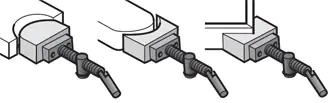 Diese Spannelemente können überall dort verwendet werden, wo es möglich ist, ein 19-mm-Loch zu bohren. Durch den schwenkbaren Hebel kann auch an schwierigen Stellen guter Pressdruck ausgeübt werden. Das Verhältnis von Gewindestange und Schaft ist 3° vom rechten Winkel abweichend, so dass der Druck immer dicht an der Hobelbank entsteht.