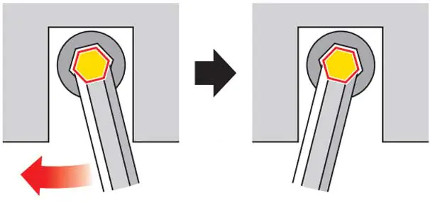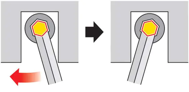 30° Drehmöglichkeit sind beim Asahi Winkelschlüssel kein Problem, da man doppelt so viele Ansatzpunkte wie beim herkömmlichen Schlüssel hat.