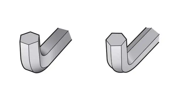 Links: Herkömmlicher Winkelschlüssel an einer Fläche gebogen.