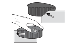 In der Skizze rechts sehen Sie einen Querschnitt. Über die in einen Schraubstock oder die Hobelbank hochkant eingespannte Ziehklinge wird das Ziehklingenschärfgerät rübergezogen. Mit der weiß gestrichelten Linie wird das Innenleben diese Gerätes angezeigt. Ein Hartmetallstift hat die Funktion, den Grat anzuziehen. Links kann man mit dem Justierknopf den gewünschten Winkel für den Grat auswählen. Nachdem der Winkel gewählt ist, wird mit der Feststellschraube der eingestellte Winkel fixiert und anschließend das Schärfgerät ein- oder mehrmals über die Ziehklinge gezogen, bis der gewünschte Grat erreicht ist. Mit diesem Gerät haben sie eine sichere und zuverlässige Führung. Es ist erhältlich auf unserer Ziehklingenseite.