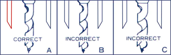 Überzeugen Sie sich vor Arbeitsbeginn, dass alle Innensechskantschrauben fest angezogen sind, auch die, die erst nach Abschrauben des Bohrers auf dem Grund der Aufnahme sichtbar wird! Die Bohrmaschine niemals schneller als mit 1000 Umdrehungen pro Minute laufen lassen!