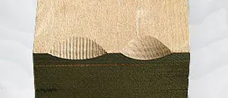 Rechts: Holz mit Bildhauerfeile bearbeitet.