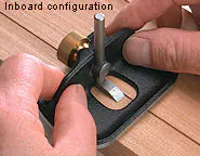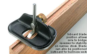 Die innere Eisenposition (innerhalb der Sohle) ermöglicht es mit der Sohle des Hobels Aussparungen zu überbrücken und sorgt so für mehr Stabilität, speziell bei der Bearbeitung von schmalen Werkstücken.