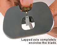 Die Sohle des Hobels ist so konstruiert, dass sie das Eisen in der inneren Position völlig umschließt. Dadurch berührt ein großer Teil der Sohle das Werkstück und es wird ein Maximum an Führung erreicht, auch wenn Sie von außen starten oder das Ende des Werkstückes erreichen.