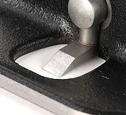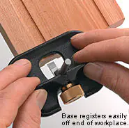 Der ergonomisch geformte Hobelkörper aus duktilem Gusseisen ist exakt gefertigt und verfügt über eine fein geschliffene Sohle. Der Hobel ist 82 mm (3-1/4 Inch) breit, 57 mm (2- 1/4 Inch) lang und hat ein 6,35 mm (1/4 Inch) breites Eisen aus Kohlenstoffstahl. Er wiegt 200 g (7 oz.).