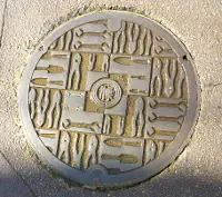 Die Stadt Sanjo, in der Keiba produziert, ist so stark mit der Werkzeugherstellung verwachsen, dass selbst Kanaldeckel mit Werkzeugmotiven dekoriert sind.