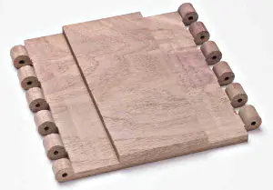 Wenn Sie das Holz für die Scharniere dickengehobeln wie auf Seite 3 beschrieben, achten Sie darauf, dass die Dicke dem Durchmesser der Halbstabfräser entspricht.